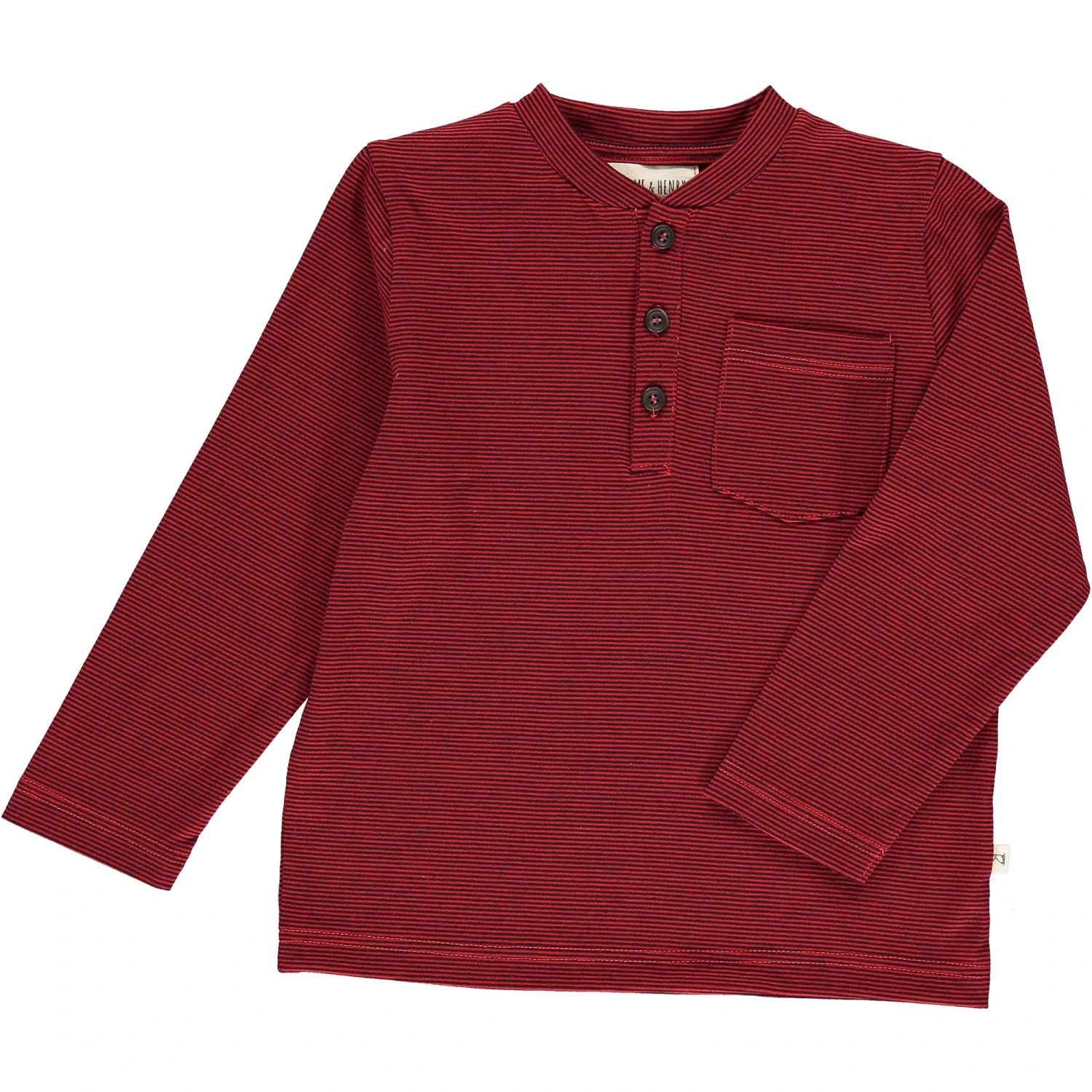 Henley’s are one of the biggest styles at Me & Henry right now, it gives the casual look to a boy but also making them look smarter with the summarys and the pocket! With a thin stripe going through the shirt. This tee goes from 0-3mths to 16yrs.