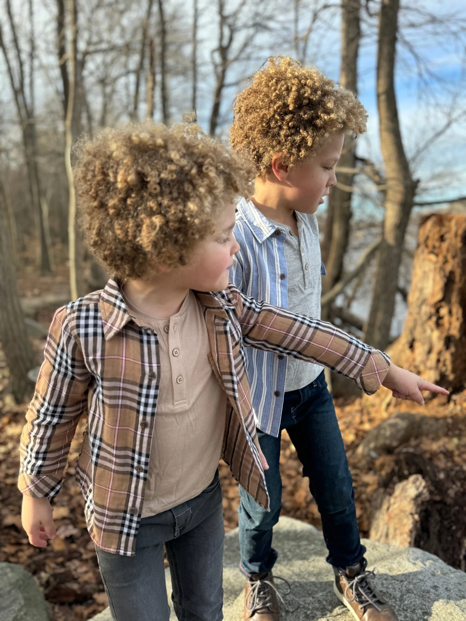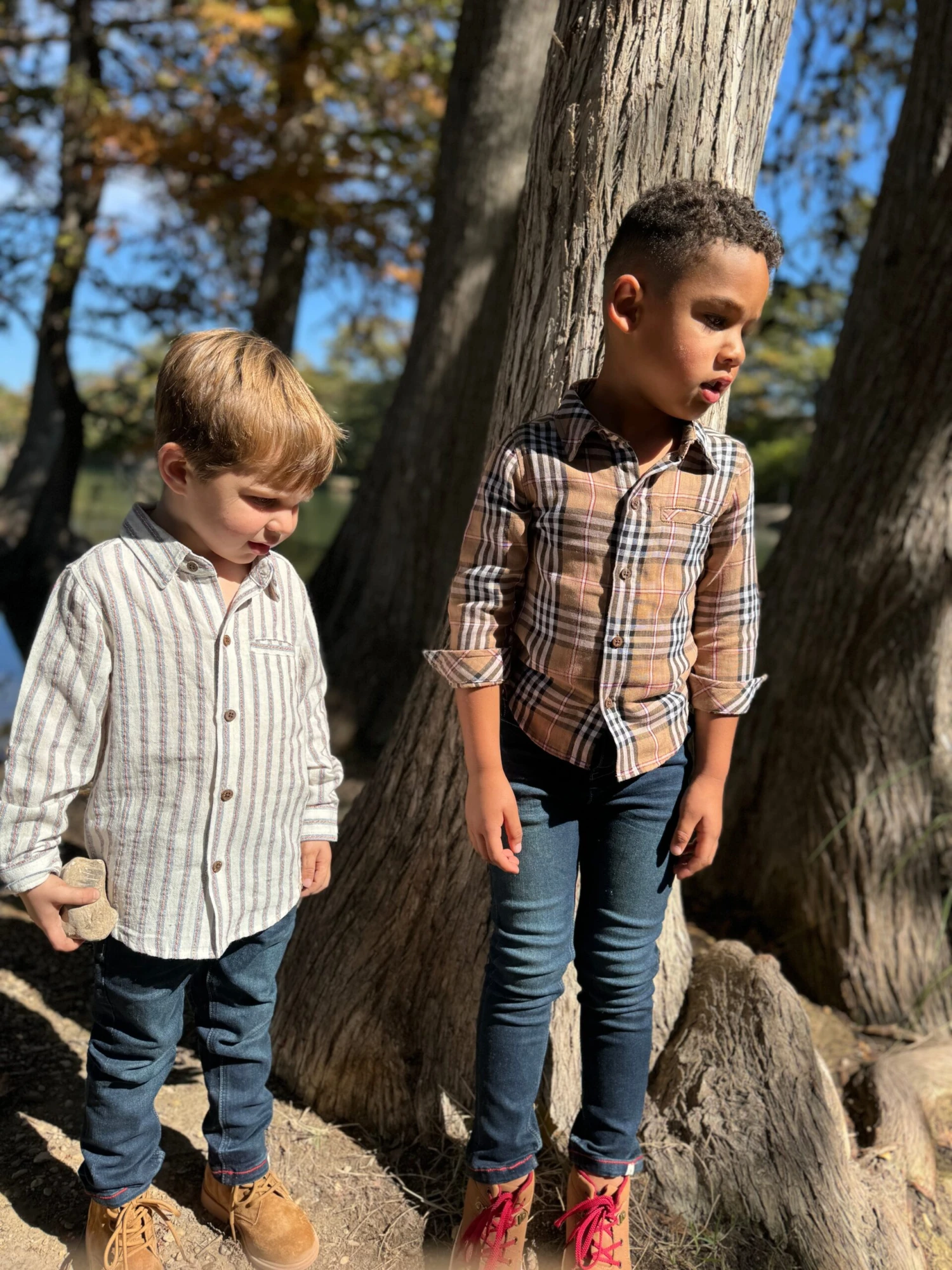 Every single one of our woven shirts has a babies woven shirt to match which also matches with the Daddy sizes! If you get all three matching, please please please send the pic to our Instagram – @meandhenrykids