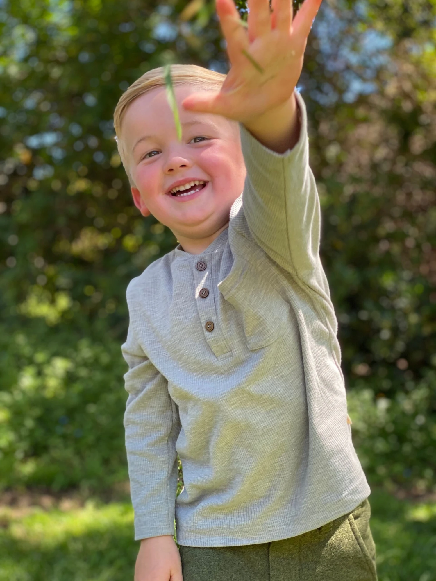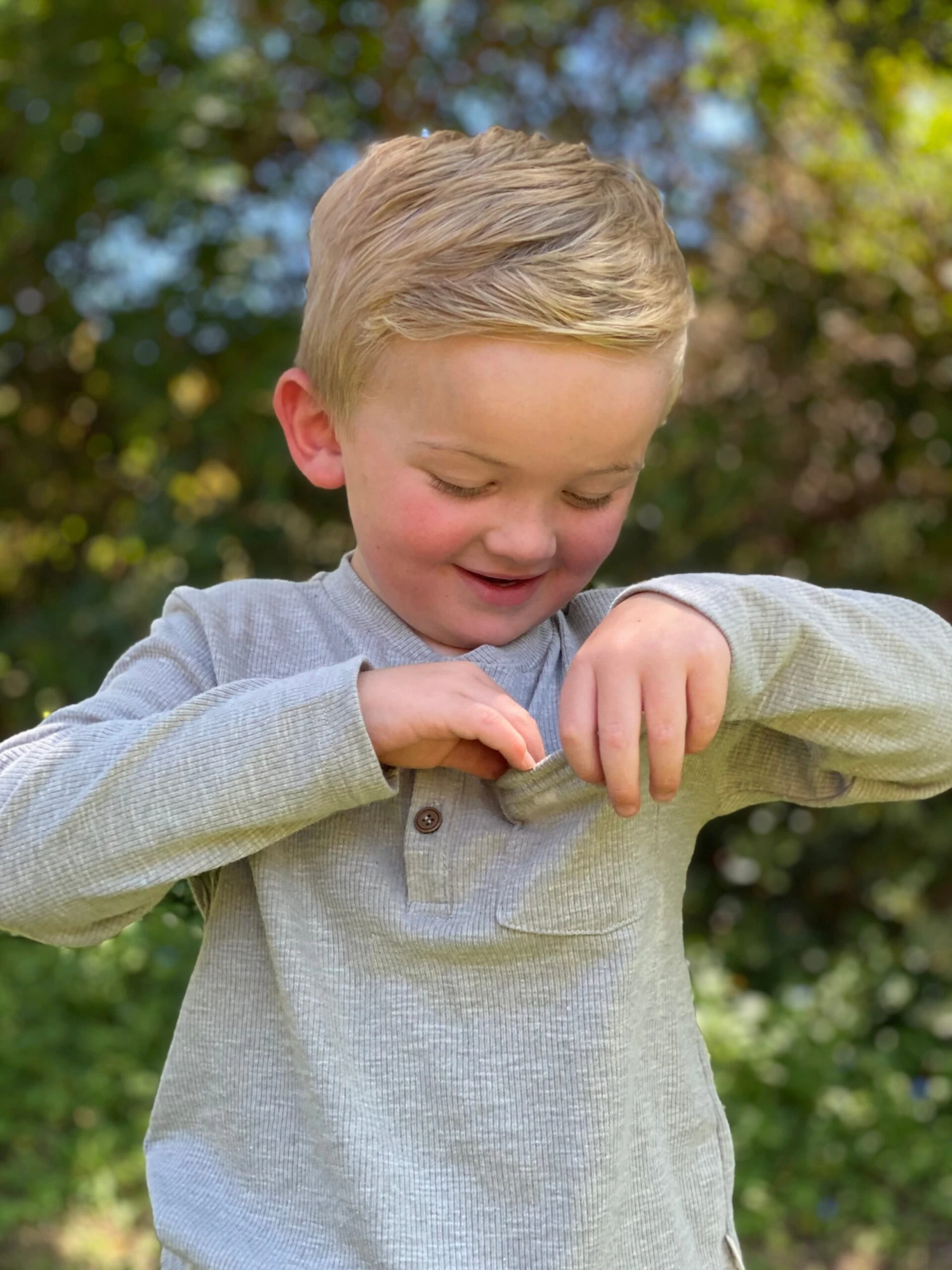 Yes – ribbed henleys. Surprising right? Who would have thought this retro look would be back. Why not match baby with older brother and even daddy?