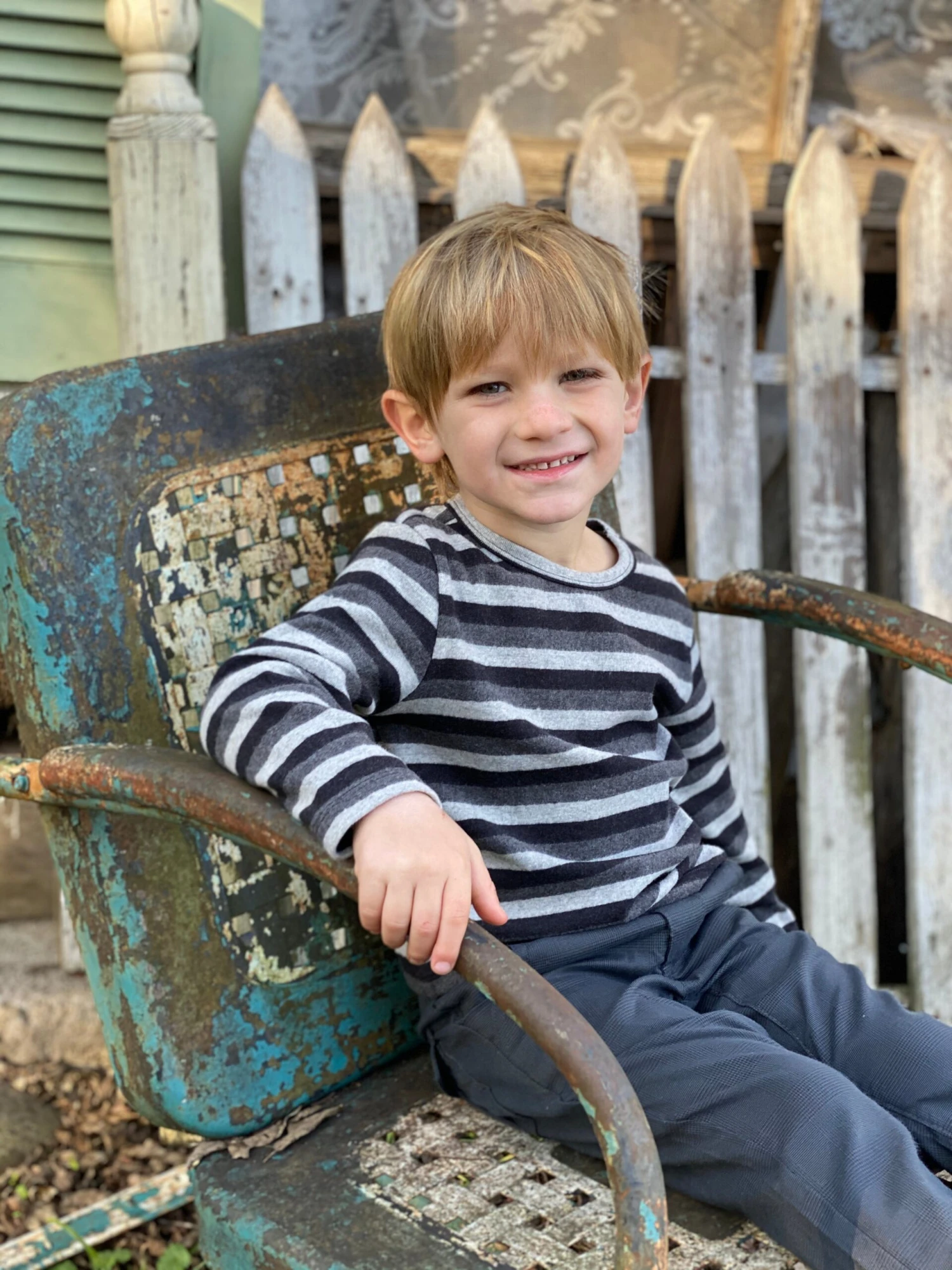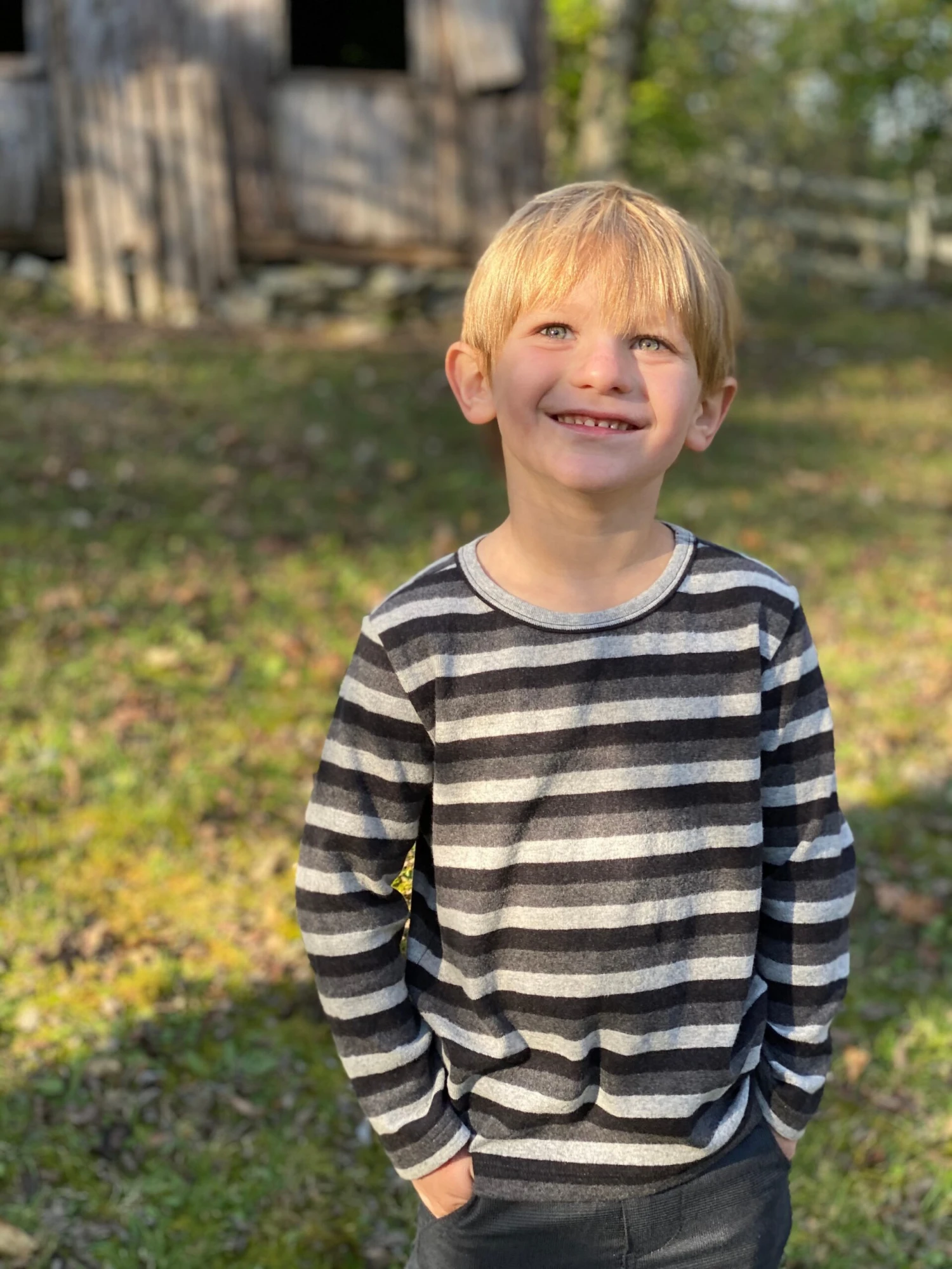 More of a late fall tee, very soft, thicker fabric. Will keep you warm for the chillier days of the year. Stripes, I mean, come on. It’s Me & Henryβ¦ We love stripes, you love stripes. It’s like a match made in heaven!Β
