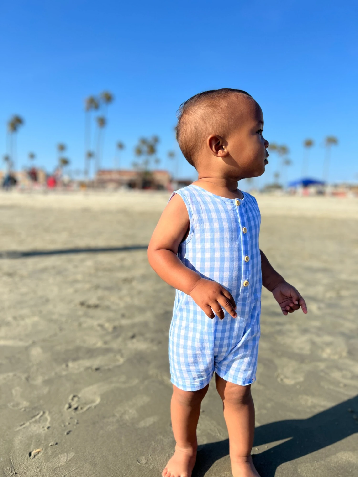 Our Blue Plaid Playsuit is perfect for your child’s summer activities. Its fun and stylish blue plaid design adds a touch of personality to any summer outfit.
