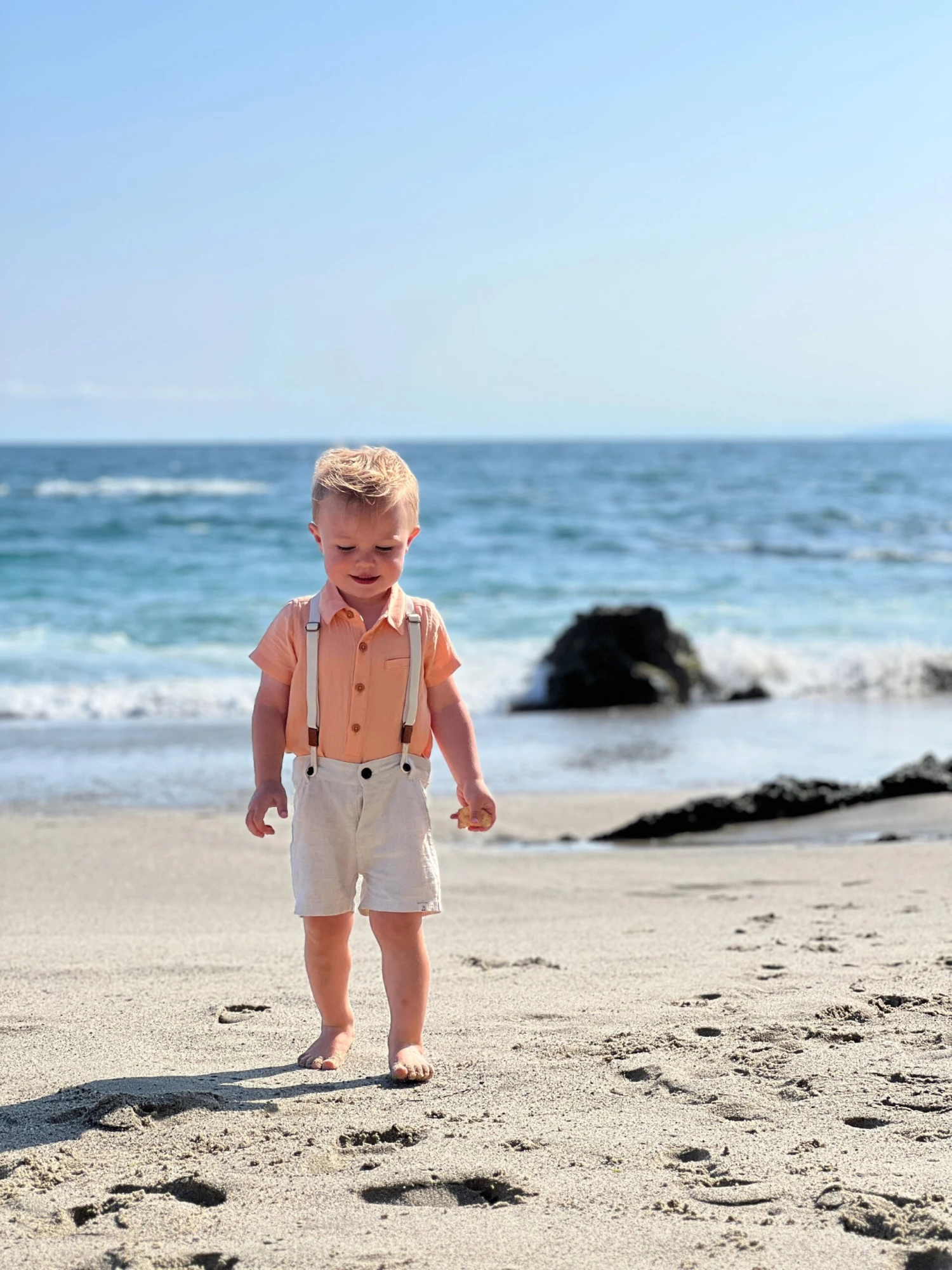 Effortlessly stylish and versatile, our cream shorts with adjustable suspenders are perfect for your little one all through the summer season. The adjustableΒ suspenders ensure the perfect fit everytime and the smart design adds a touch of sophistication.Β