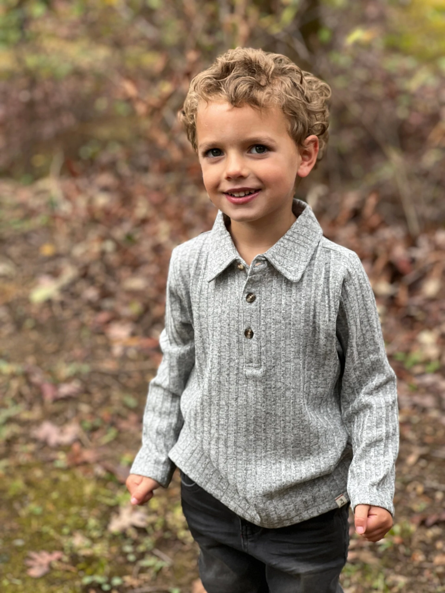 Stay cozy during autumn afternoons of outside play with our Grey CHRISTIAN Knitted Polo! This snuggly grey polo shirt is sure to keep your mini-me smiling even when the temperatures drop. What’s not to love?!