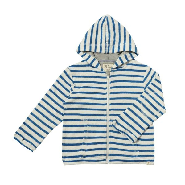 Soft terry cloth fabric and bold royal blue and white stripes makes this zip-up hoodie an ideal piece in your little ones wardrobe for layering over his favourite t-shirts on cooler days.