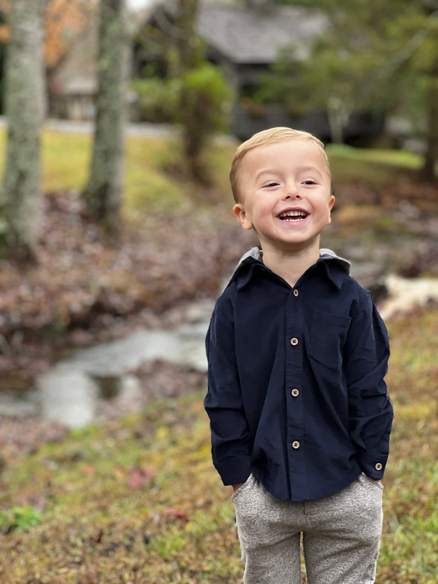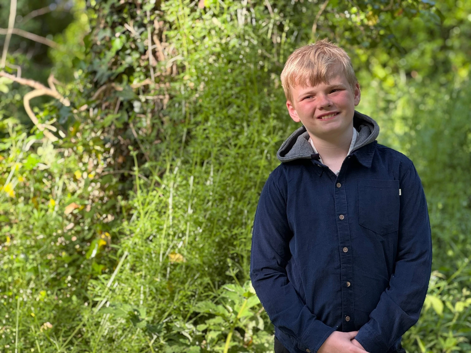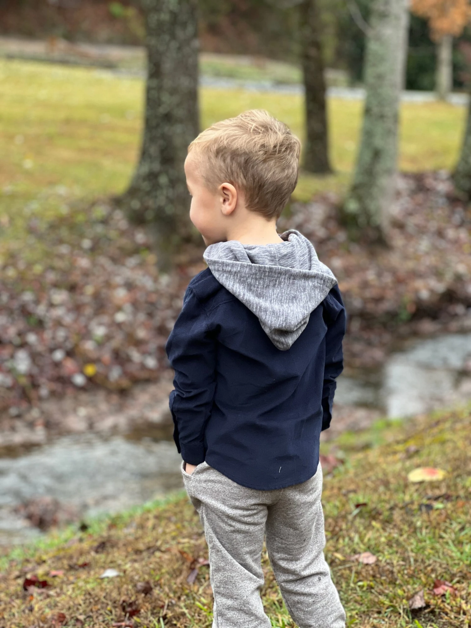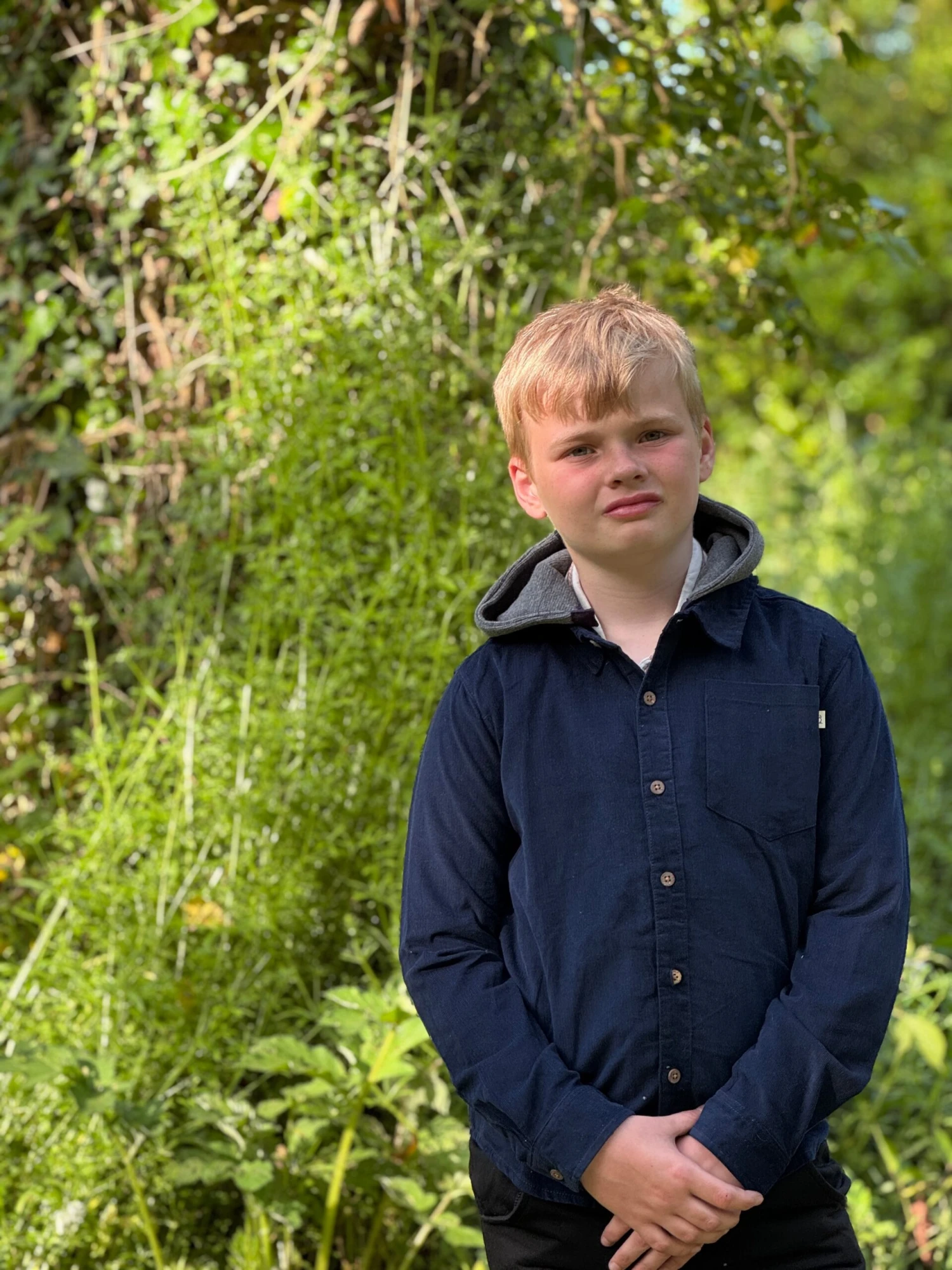 Navy Cord Hooded Woven Shirt