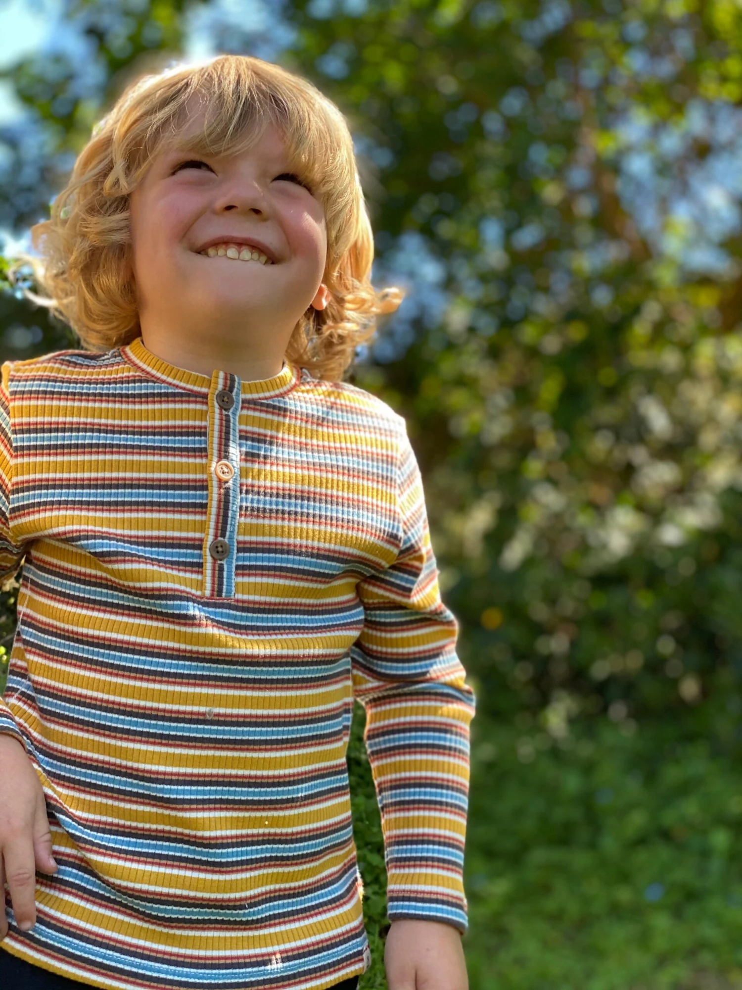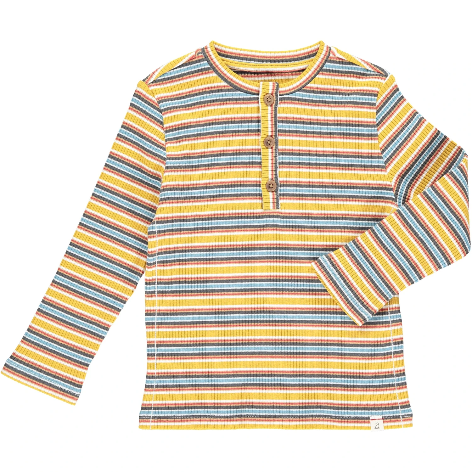 Mustard/Blue Striped Ribbed Henley