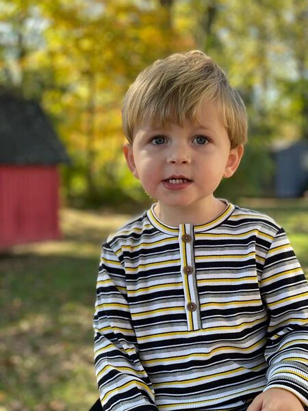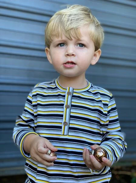 Yes – ribbed henleys in 2021. Surprising right? Who would have thought the retro look would be back BUT boutiques have loved buying this style. The yellow/black/white is as bold as it could be but it has been one of our best sellers!