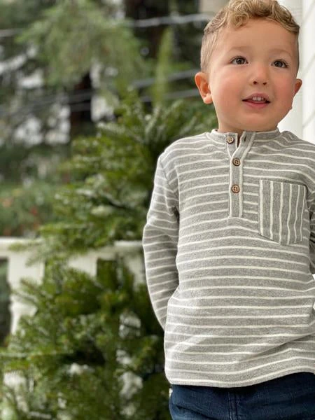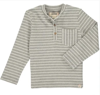 We love stripes here at Me & Henry! Grab one of our super soft, long-sleeved henley tees today.