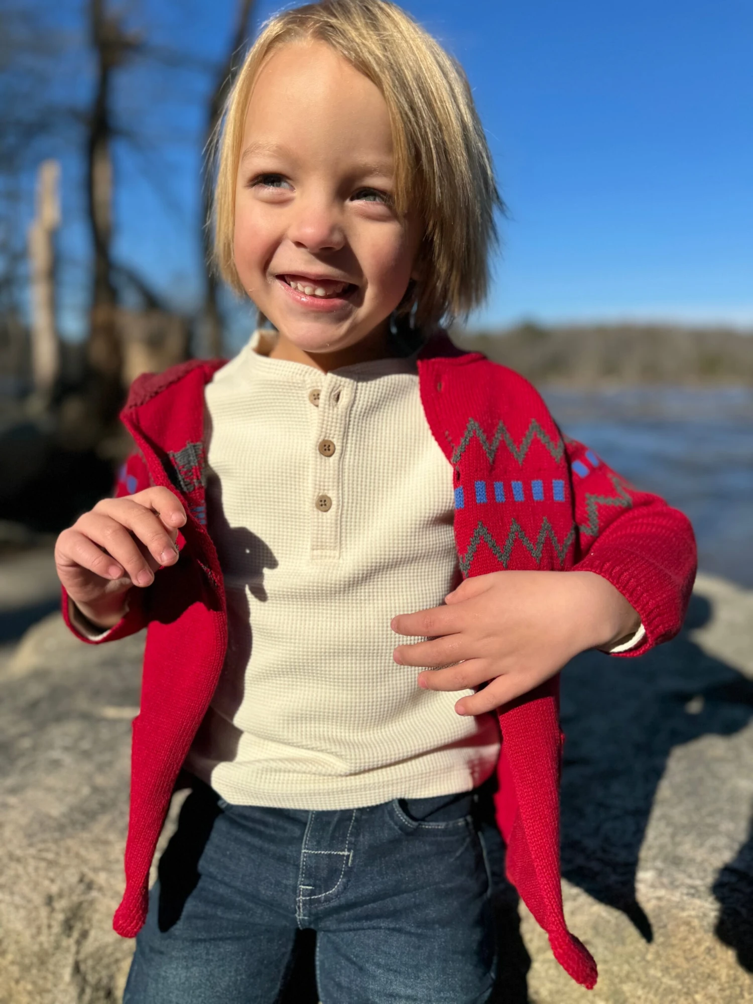 This slightly thicker, heavier waffle-knit fabric provides comfort and warmth, making it ideal for layering with our jackets on cooler days. Stylish and versatile, it’s a great addition to any autumn wardrobe.