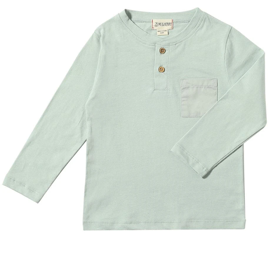 This pale mint Henley tee is a timeless classic, featuring a comfortable fit and stylish summary placket and cute woven pocket.