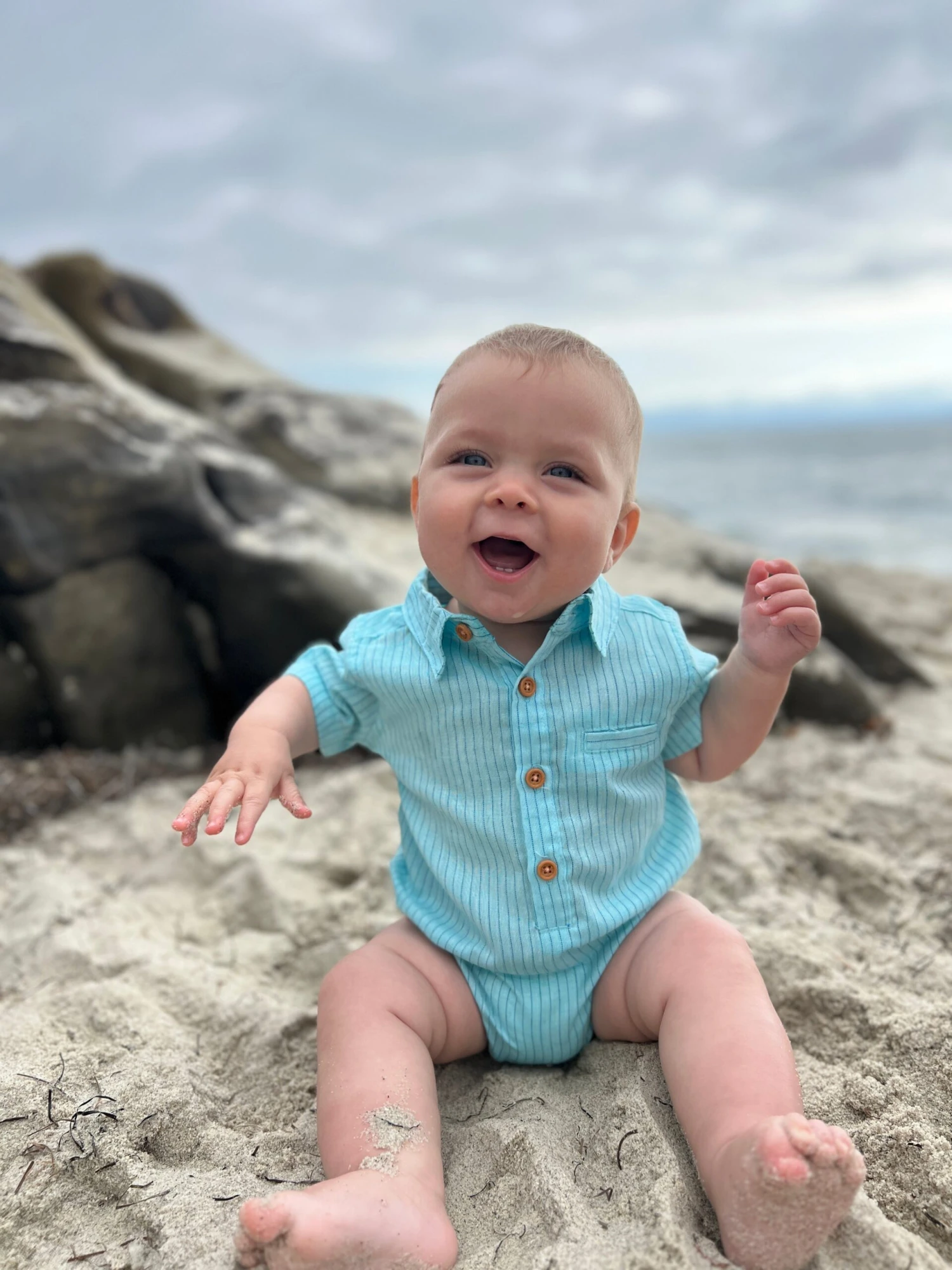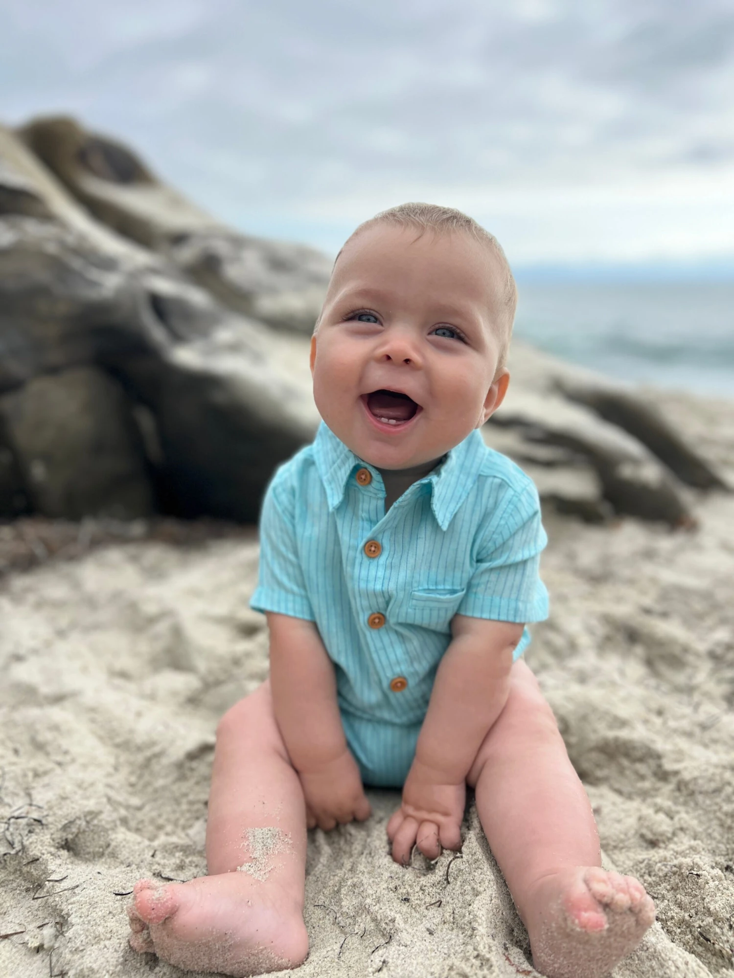 Introducing HELFORD’s Aqua/Royal Stripe Woven Onesie for children, perfect for summer days at the beach or by the ocean. This comfortable and stylish onesie will keep your little one cool and looking great. Make memories and enjoy the sun with HELFORD.