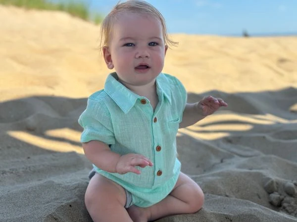 With its subtle mint hue, this onesie offers a calm, peaceful look that’s perfect for any occasion. Whether it’s a playdate, a family outing, or a cozy day at home, this onesie provides a timeless, versatile style that pairs well with any accessories or layers.