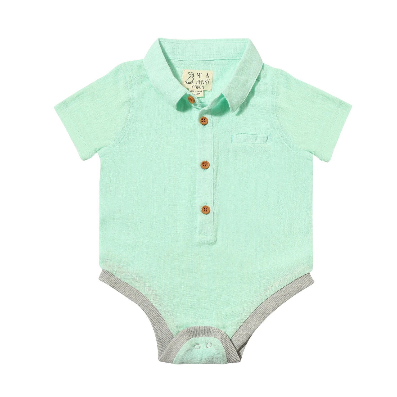 Soft, soothing, and effortlessly stylish, the mint green of this woven onesie brings a refreshing pop of colour to your little one’s wardrobe.