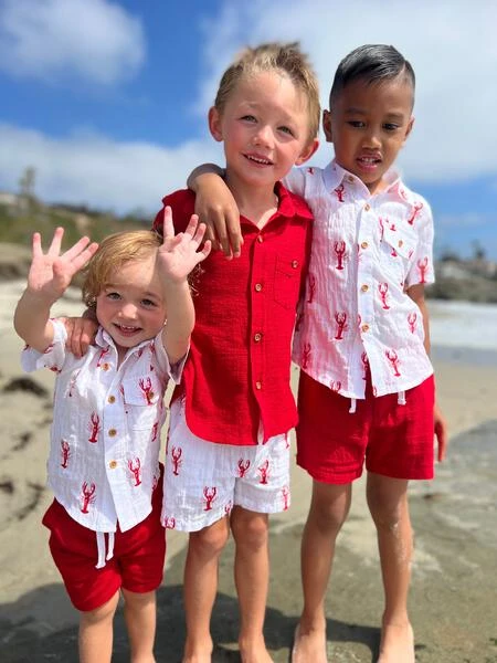 White w/ red lobster print shorts