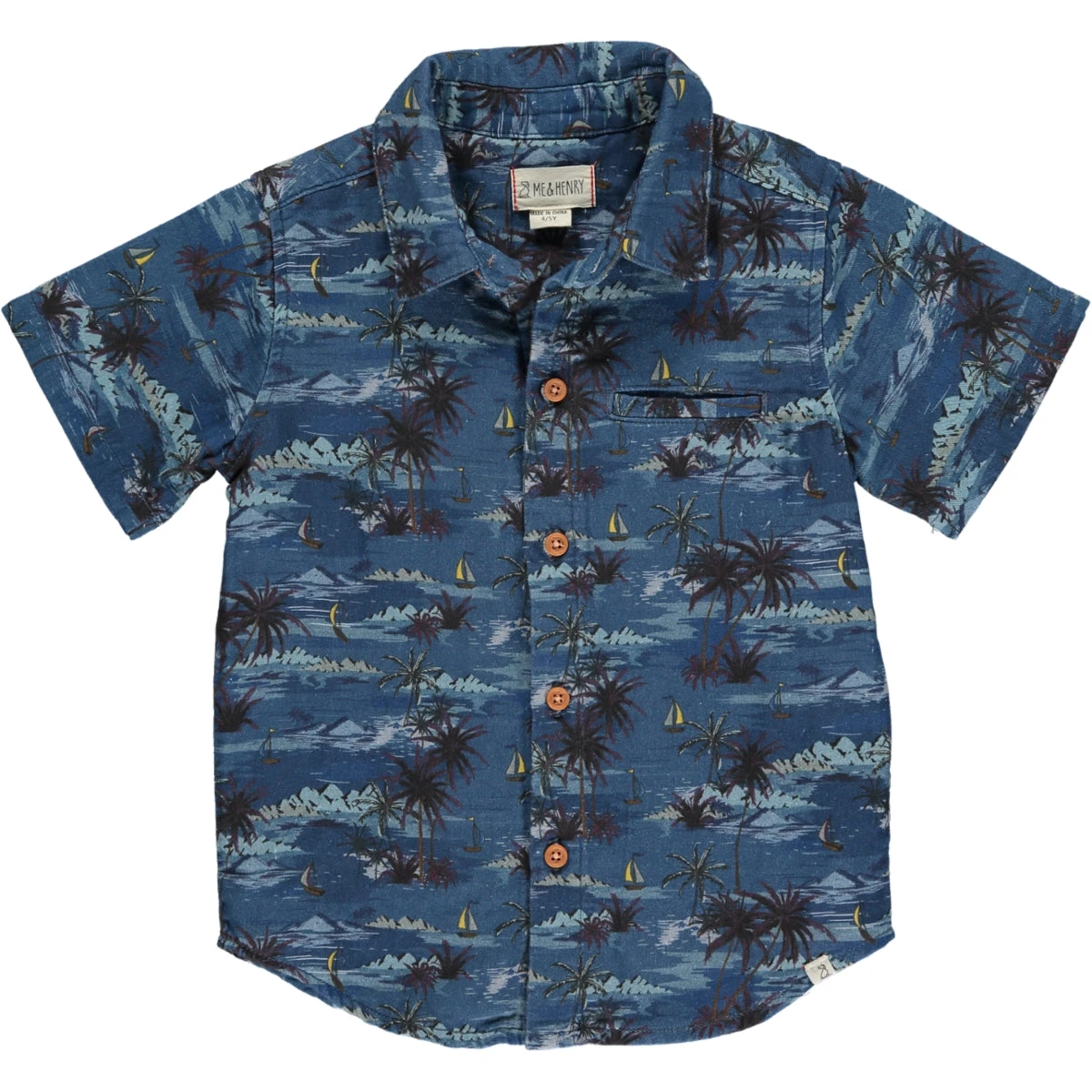 Add a tropical touch to your summer wardrobe with our Maui Blue Hawaiian Print Woven Shirt. The vibrant print will give you a laid-back island vibe no matter where you go. Embrace the summer season with this must-have addition to your child’s closet.