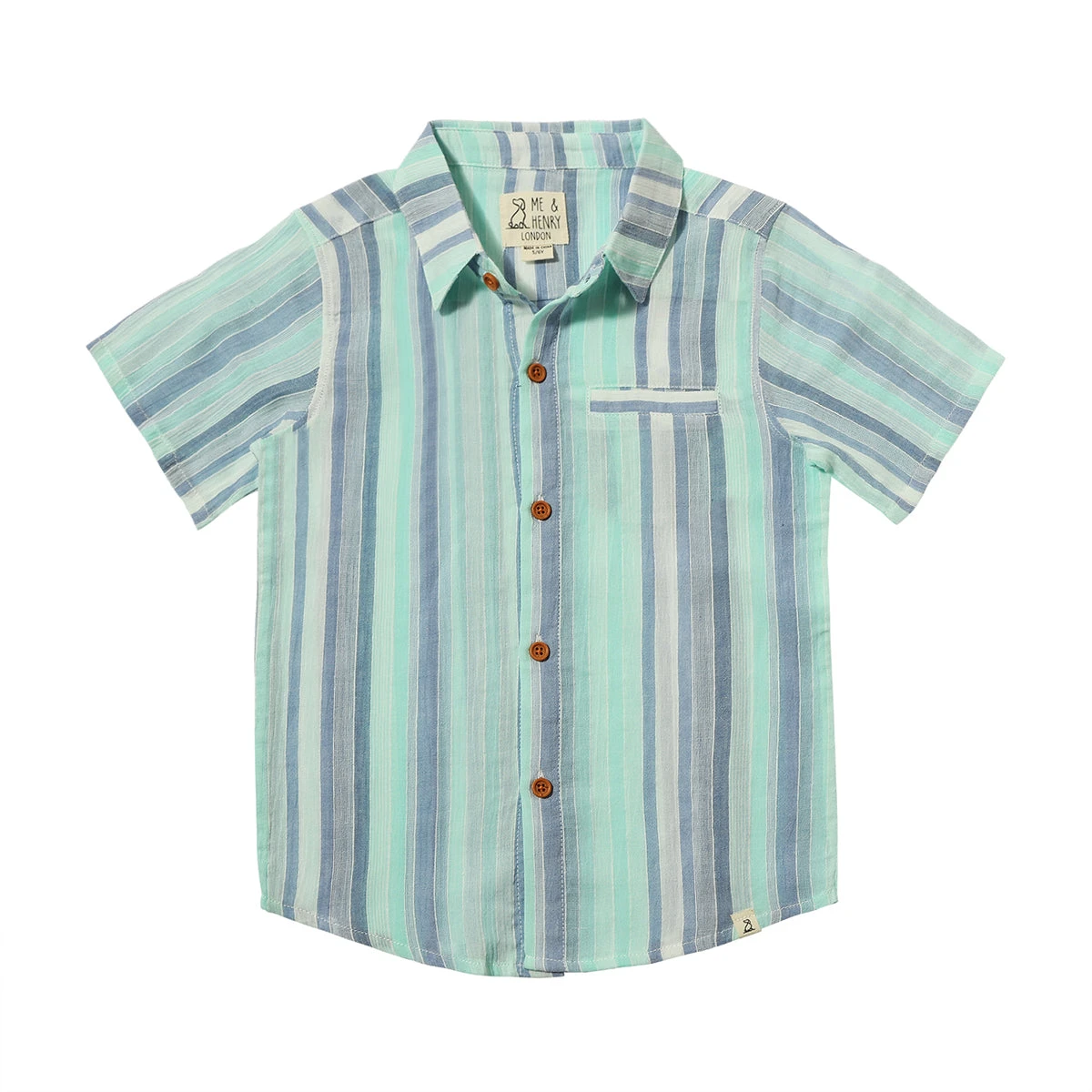 Cool as anything in our blue and seafoam stripe woven shirt! Featuring bold stripes, this shirt offers a perfect blend of cool colours that are both fun and versatile.