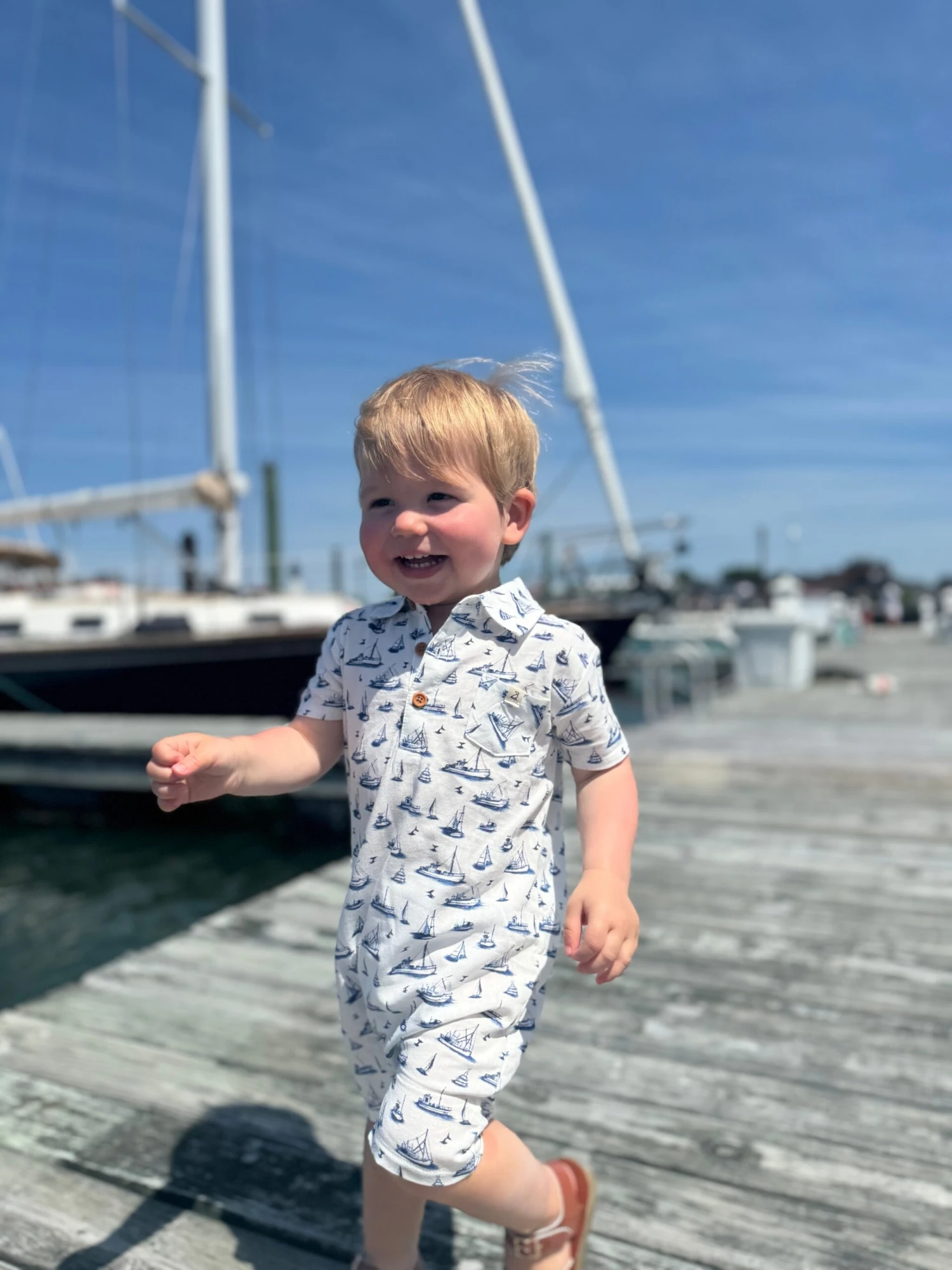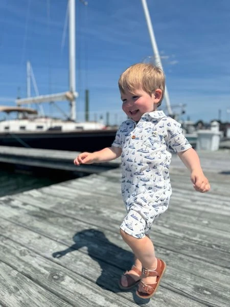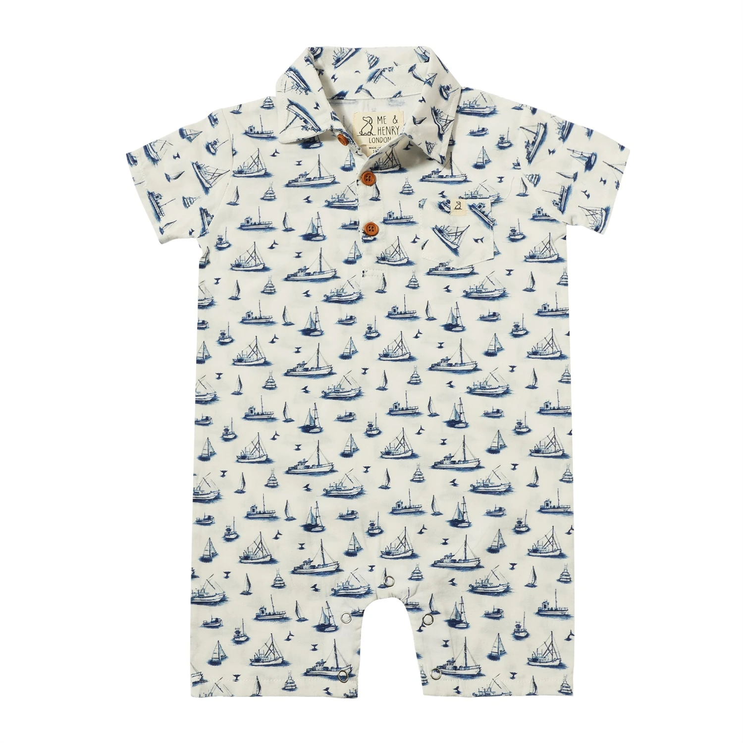 Set your little one afloat in style with this charming navy boats printed romper. Featuring a classic design of sailboats, this romper is perfect for tiny adventurers with a love for the sea and all things nautical!