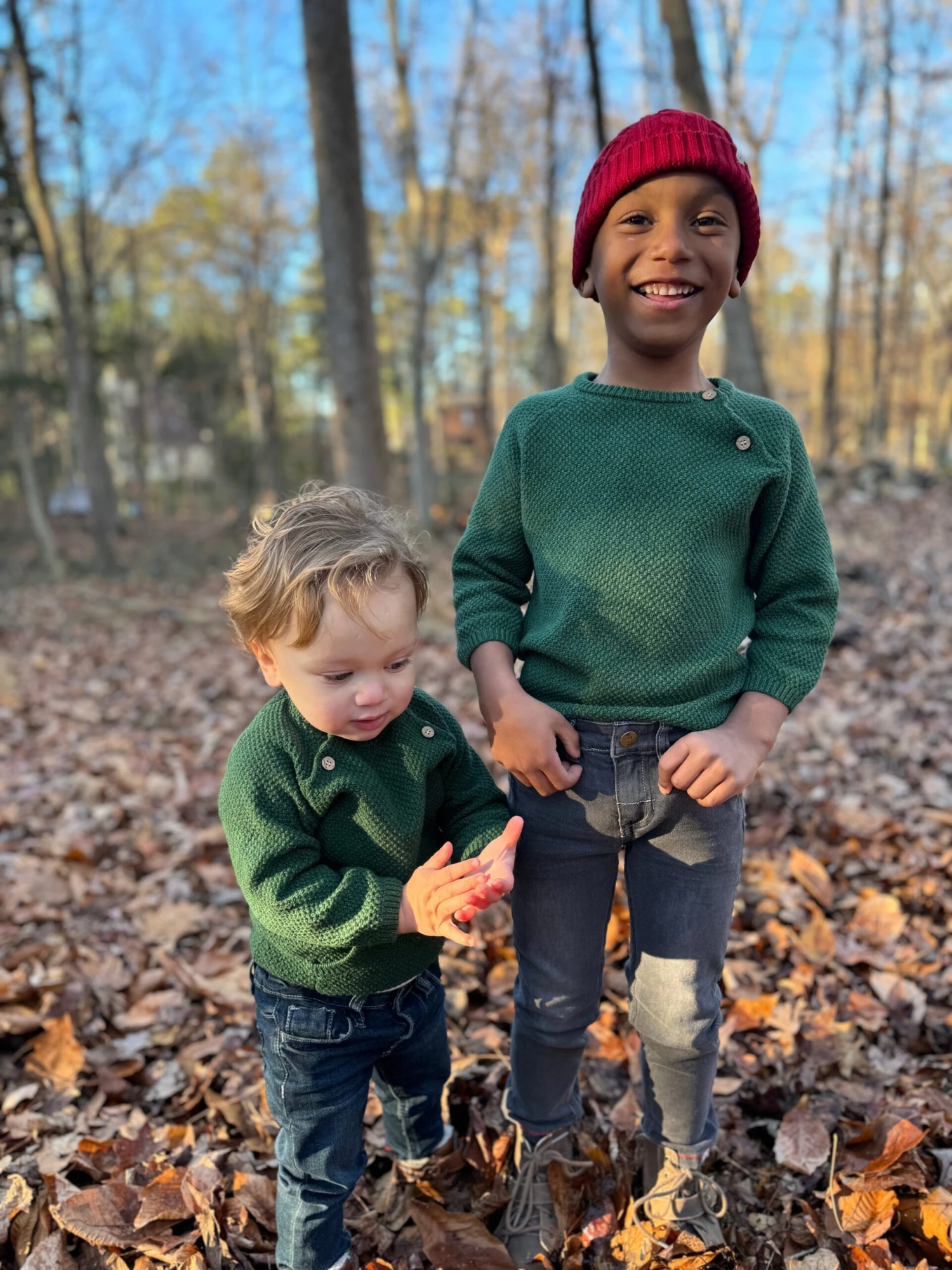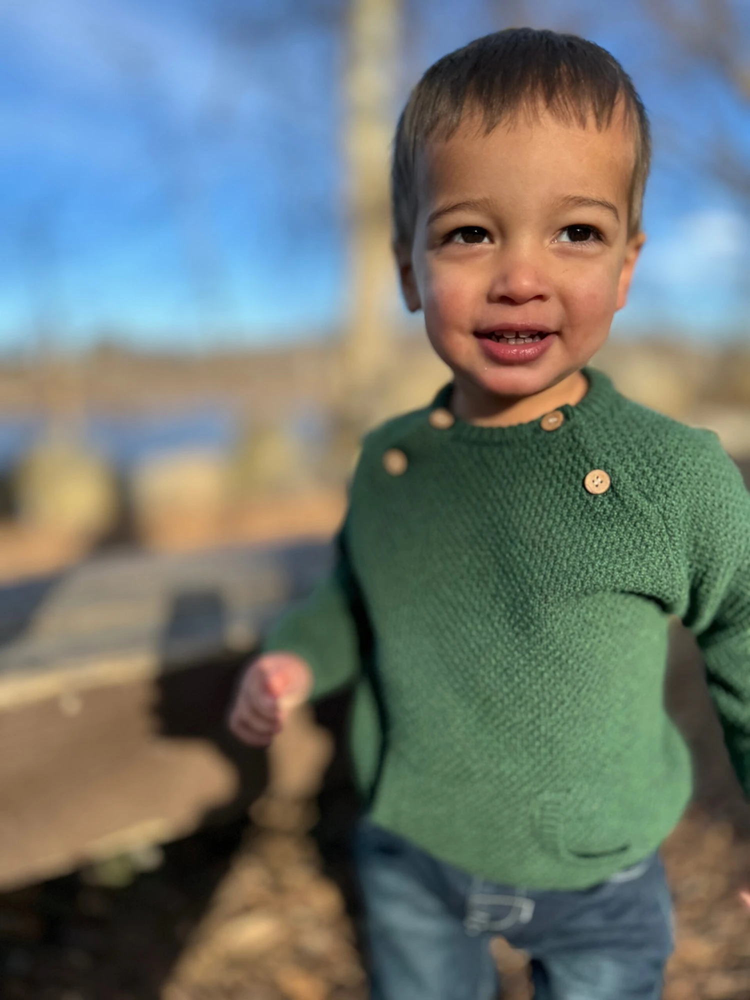 Perfect for winter, this forest green baby sweater keeps your little man warm and cozy. Its classic design and soft fabric are ideal for layering, making it a great choice for both chilly days and outdoor adventures.