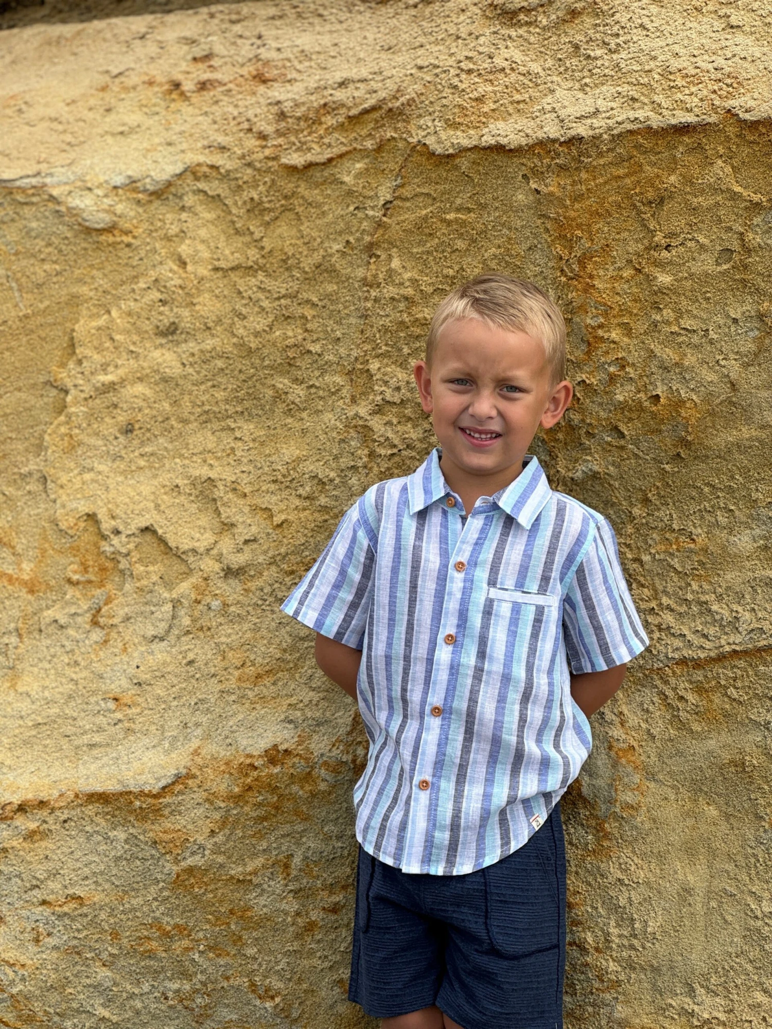 Get ready for the great outdoors with our NEWPORT Blue Wide Stripe Woven Shirt! This playful shirt is perfect for splashing in the summer, making it a must-have for your little one’s wardrobe. Its wide stripes add a touch of quirkiness to any outfit.