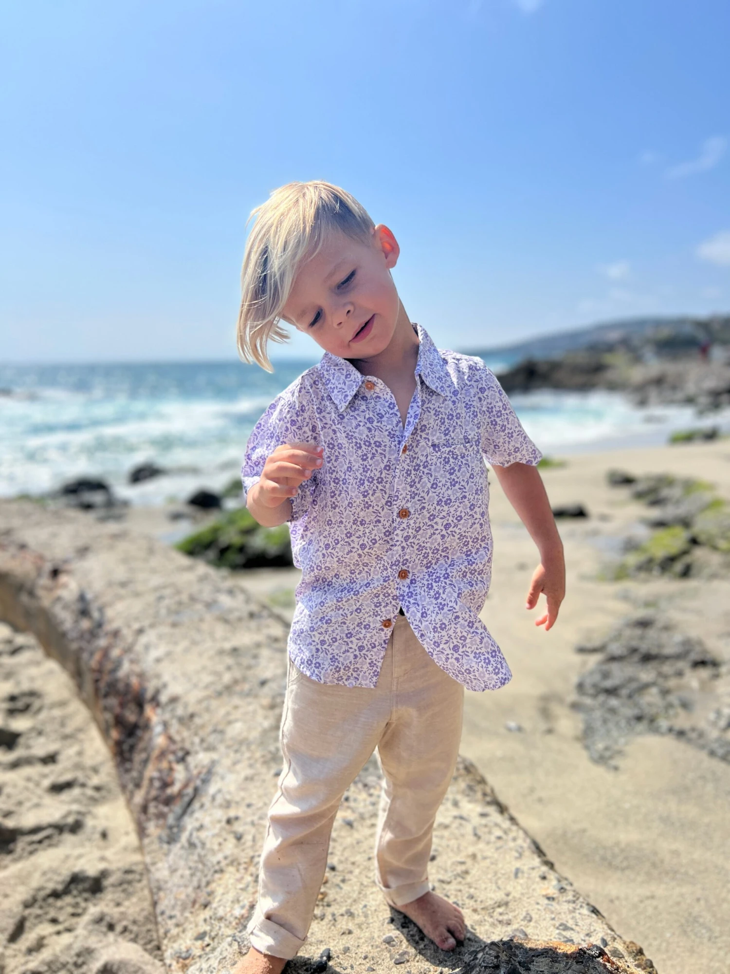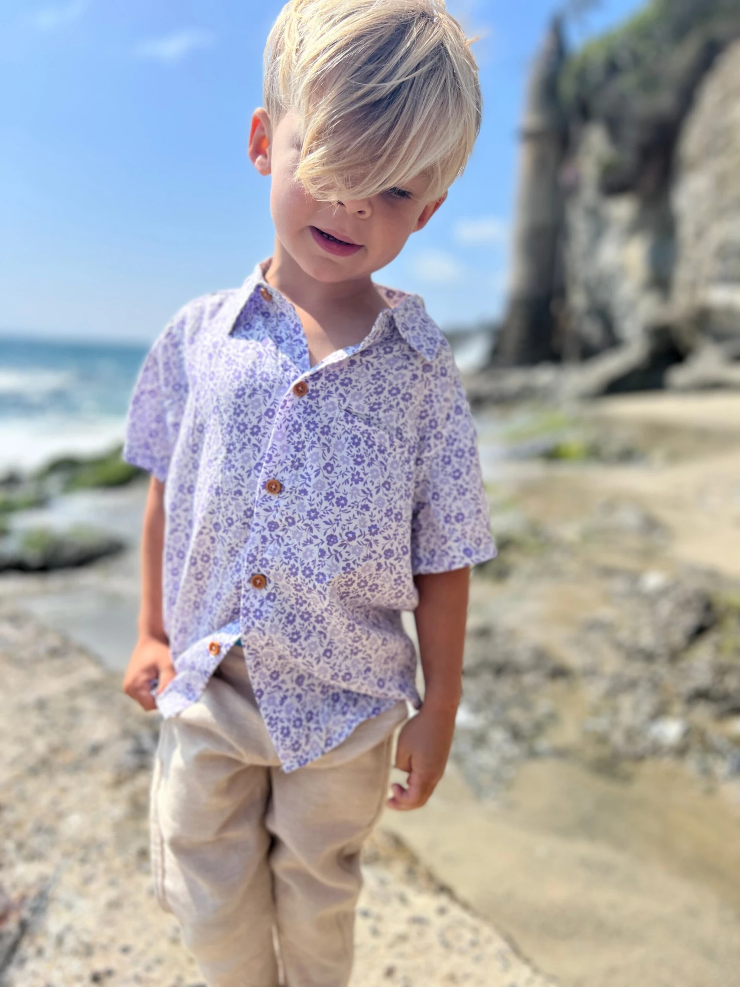 Dress your little man in the NEWPORT Lilac Floral Woven Shirt for a smart and adorable look. The lilac floral pattern adds a touch of cuteness – Perfect for any occasion.