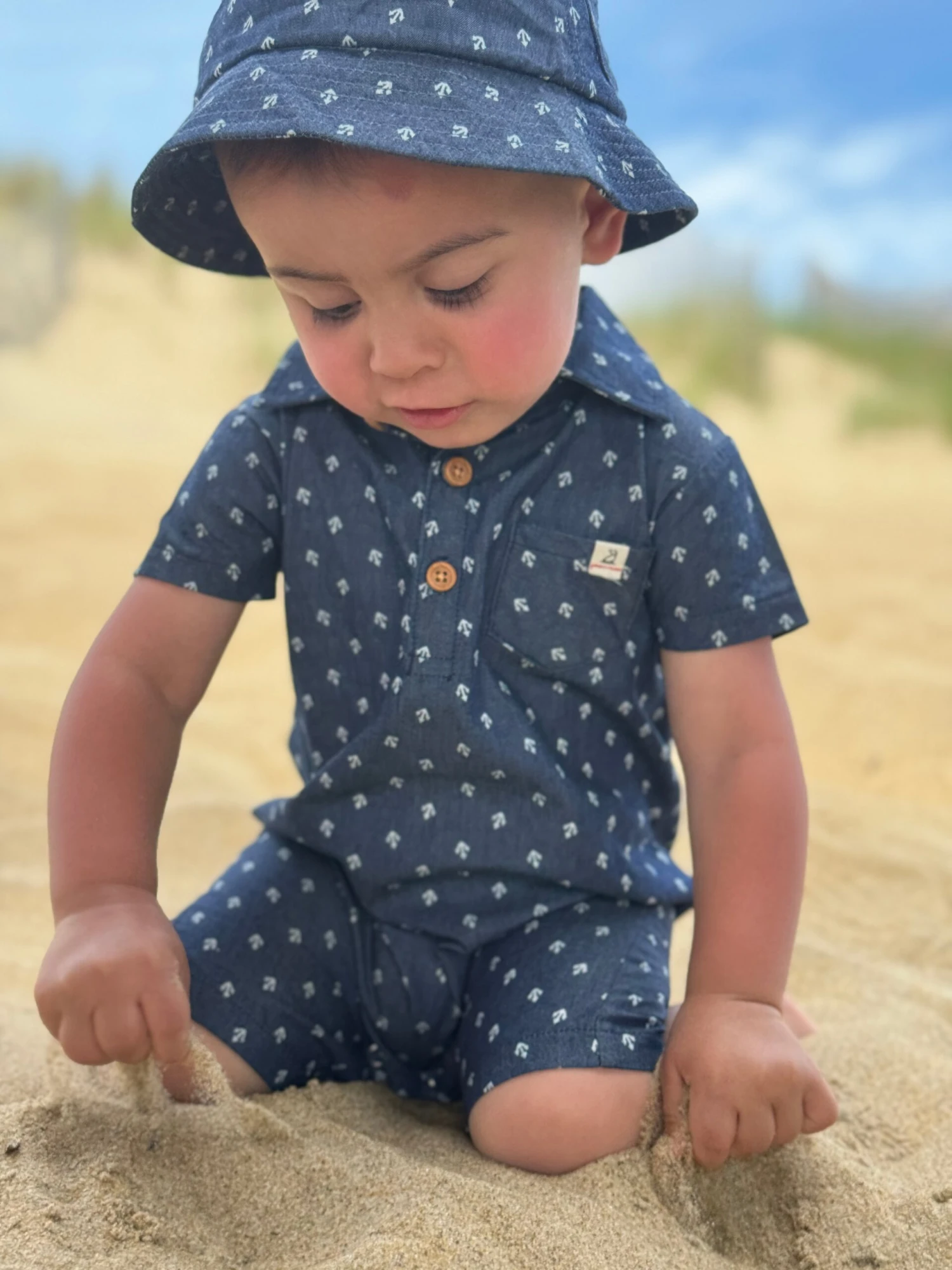 Get your little one ready for adventure with our Chambray Anchor Romper. This romper is perfect for a day at the beach, those nautical adventures or backyard playtime.Β