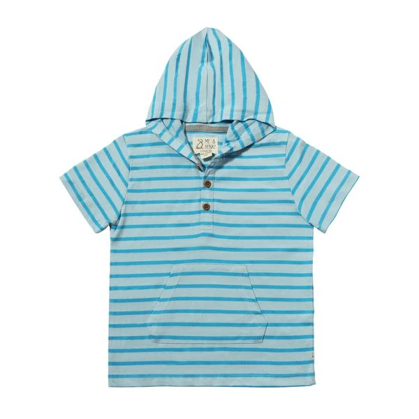The aqua and white hooded top is a fun, comfy, and stylish piece that every little guy will love!