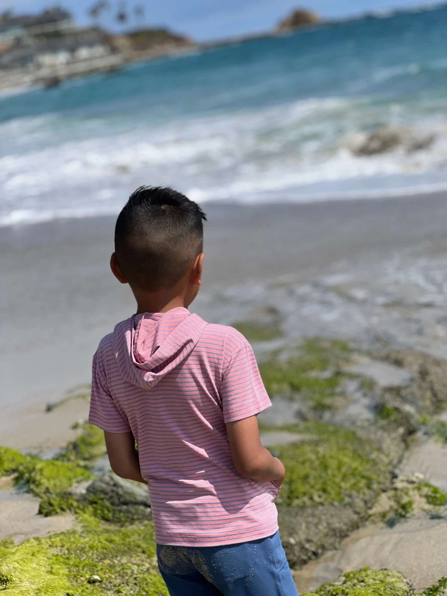 This adorable SENNEN pink and blue stripe hooded top is perfect for the little ones who wants to look stylish and feel comfortable.
