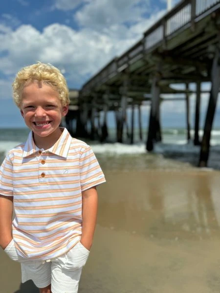 With bold stripes in tangerine, lime, and white, this polo offers a vibrant, sporty look that’s perfect for any occasion.