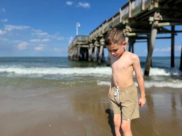 These khaki swim shorts are an easy, comfy wear and a versatile addition for poolside, beach days, or just splashing around.