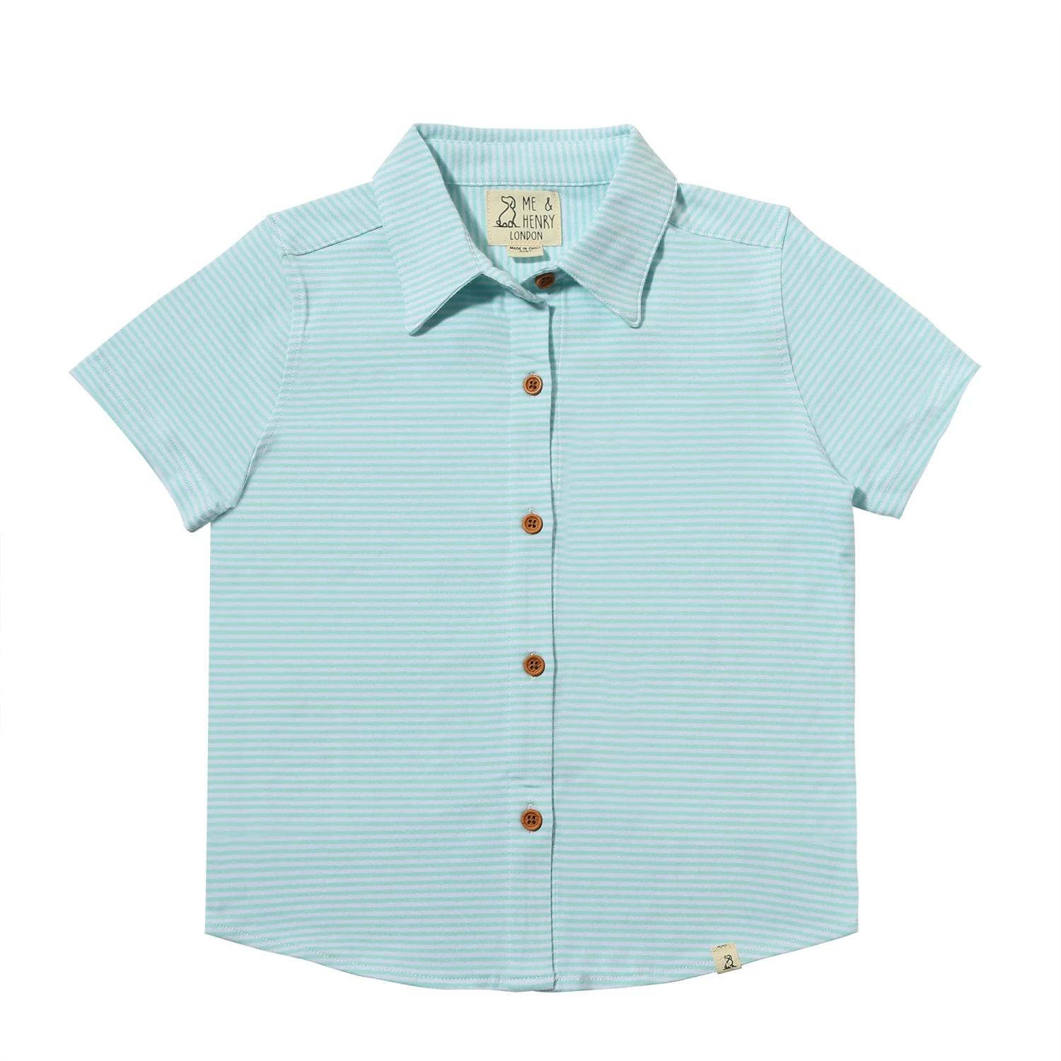 The aqua and white stripe jersey shirt is a timeless wardrobe essential that effortlessly combines comfort and classic style.