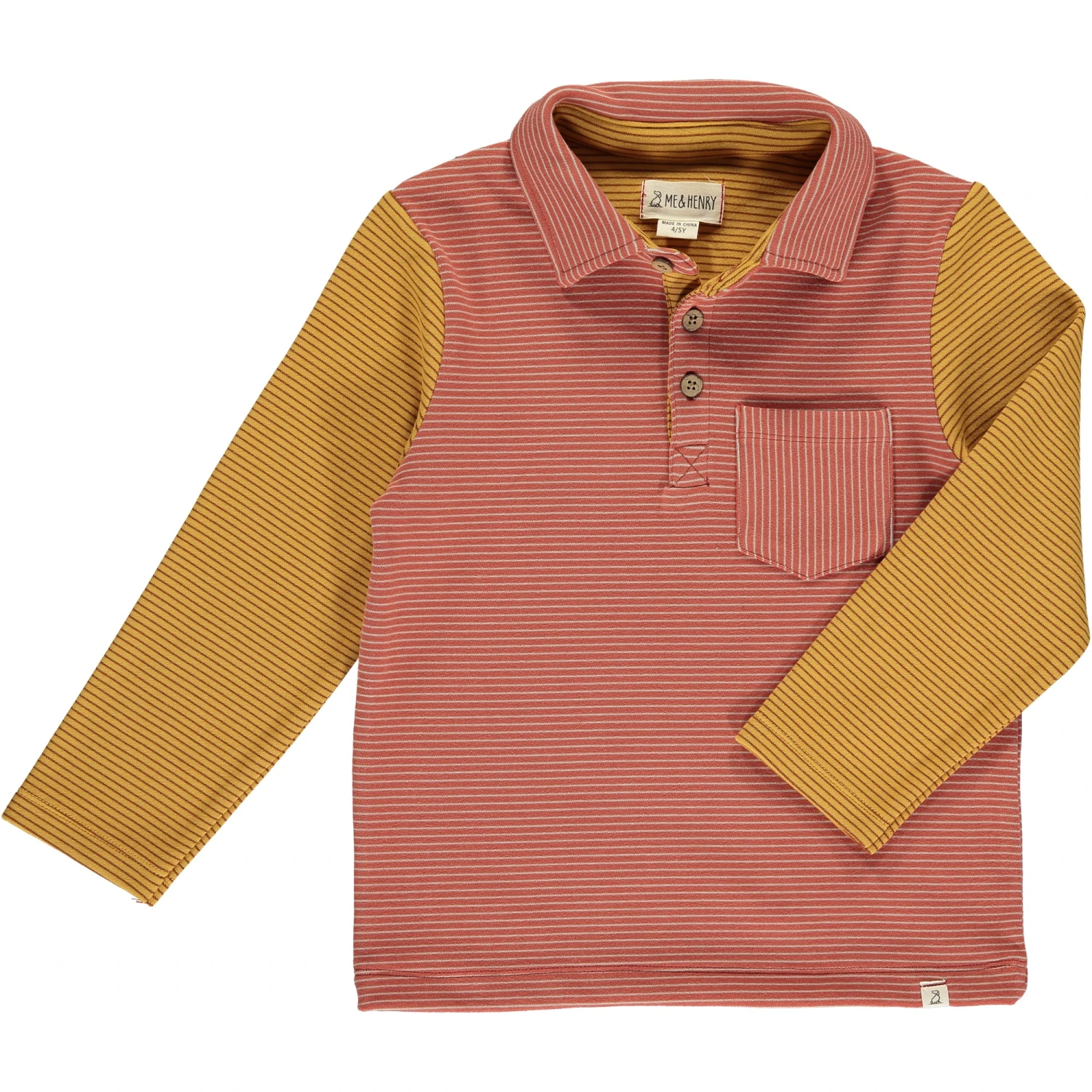 This TROY Polo is a festive mix of autumn-hued pumpkin and gold! Cozy up in style with this chic and comfy polo. Get your stripe on! Made from our warmest coziest fabric ever