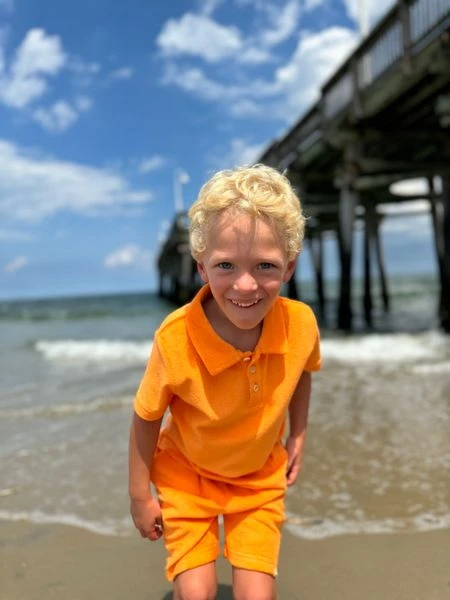 A fresh and fun twist on a classic! Made from soft, absorbent terry towelling fabric, this polo is perfect for warmer days when your little one needs comfort and style.